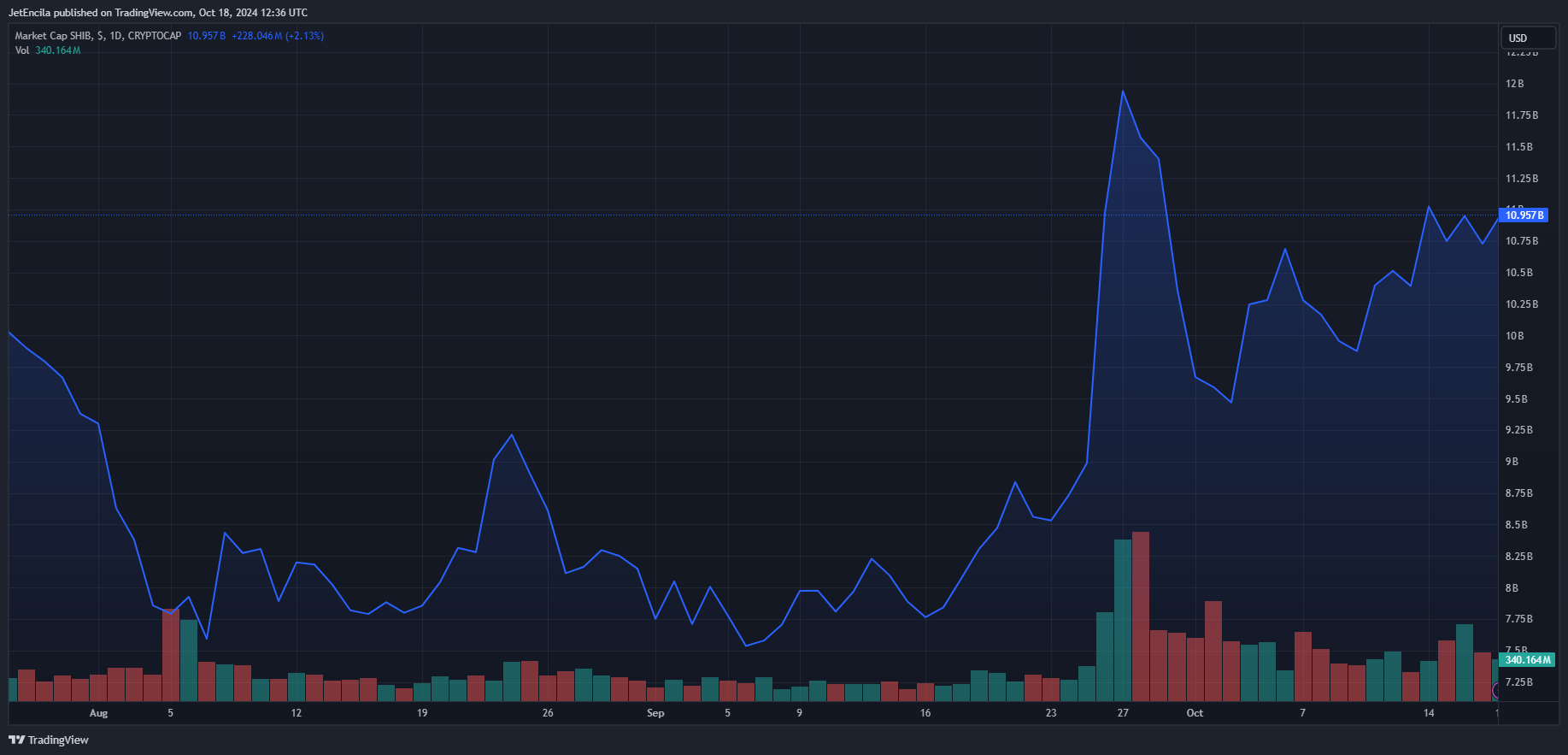 It may need ended its international development reversal and gone off a previous downtrend however don’t depend it out but since throughout the late elements of September 2024, SHIB noticed an enormous spike because it recorded an all-time excessive at $0.00002135.