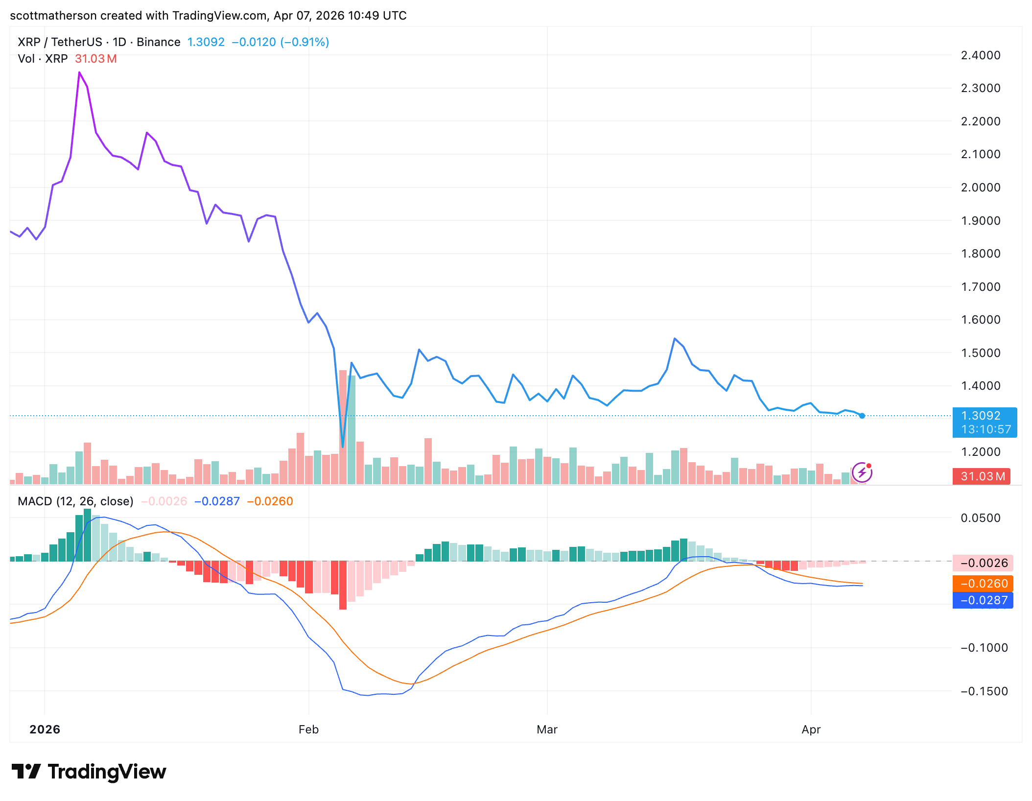 Notably, the latest accumulation exercise comes whilst XRP faces important volatility and value declines towards $1.3. The cryptocurrency has already recorded six consecutive months of losses since October 2025. The ongoing downtrend has positioned extreme stress on its value and market construction, contributing to this in depth dropping streak.