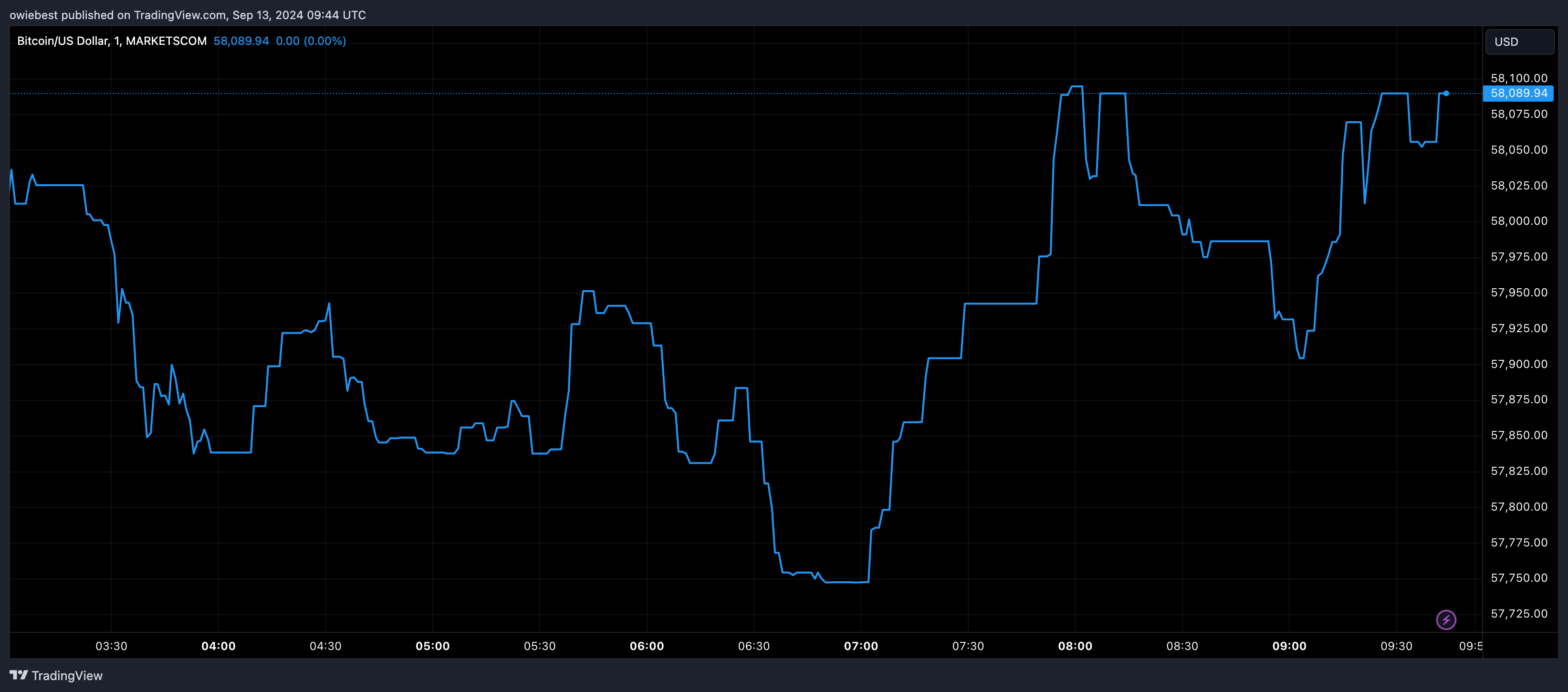 BTC worth above $58,000 as soon as extra | Supply: BTCUSD on Tradingview.com