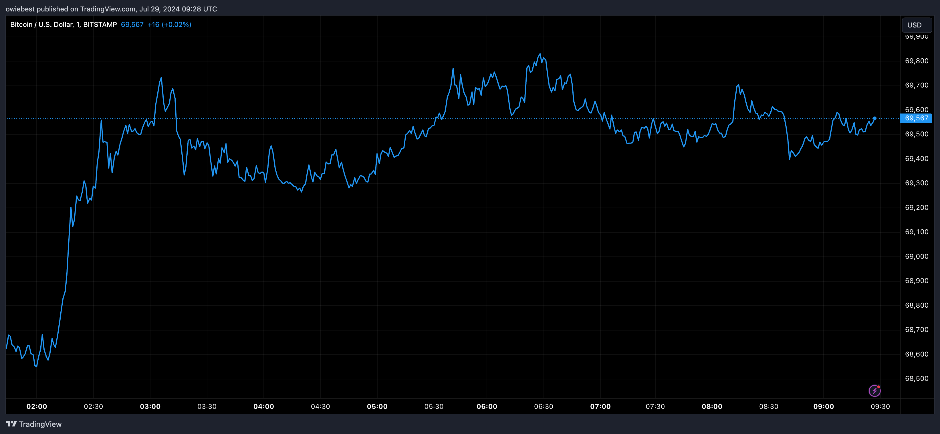 BTC value recovers from lows | Supply: BTCUSD on Tradingview.com
