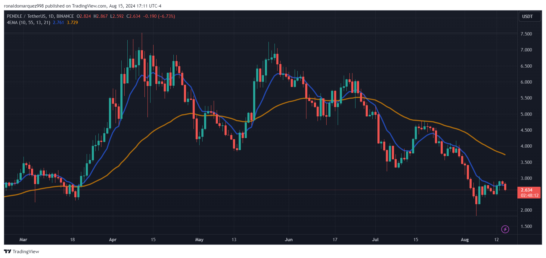 Final on the checklist, is the most important altcoin among the many six by market cap, Pendle (PENDLE), a protocol enabling the tokenization and buying and selling of future yield, rounds out the checklist. At the moment priced at $2.63 with a market capitalization of $419 million, Pendle’s positioning within the DeFi sector aligns with the analyst’s broader thesis.