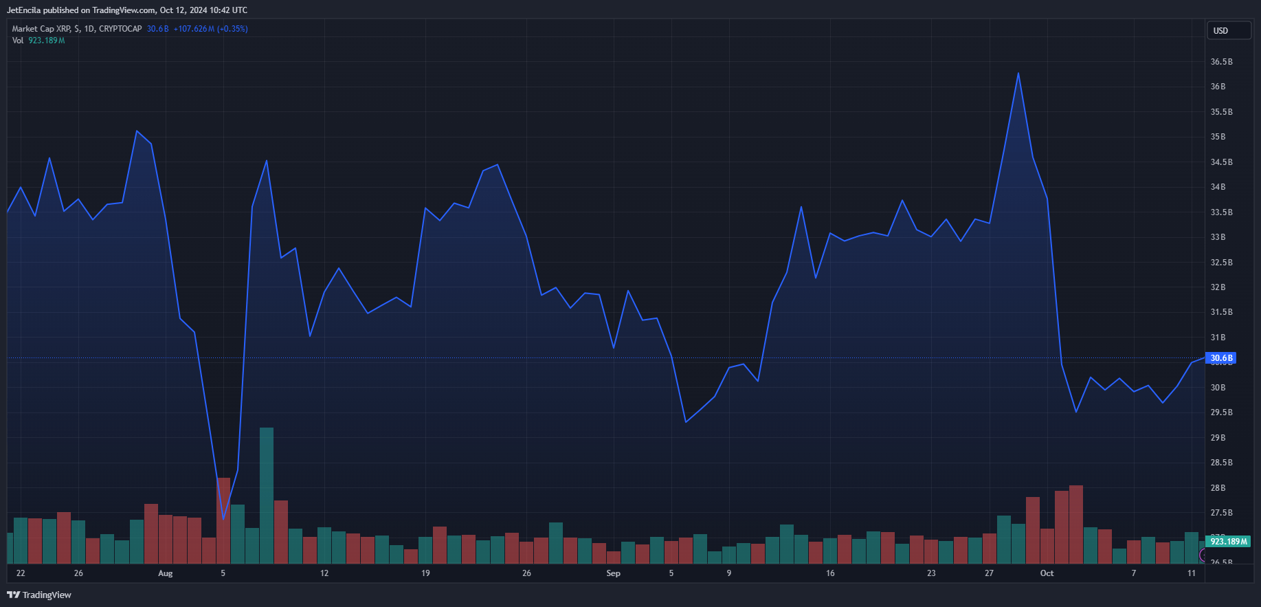 XRP market cap presently at $30.6 billion. Chart: TradingView