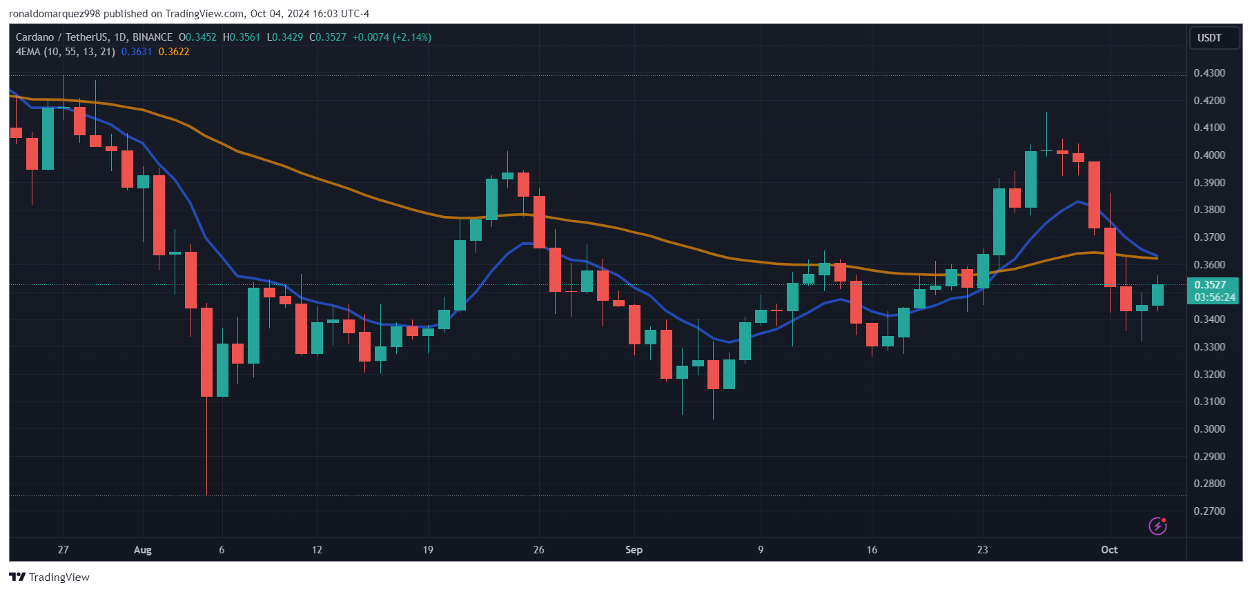 On the time of writing, Cardano’s native token ADA trades at $0.352, recording a 2% value surge within the final 24 hours.