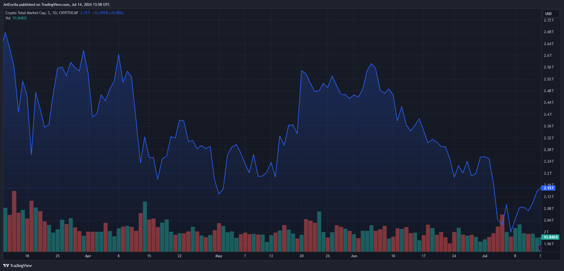 Whole crypto market cap presently at $2.1 trillion. Chart: TradingView
