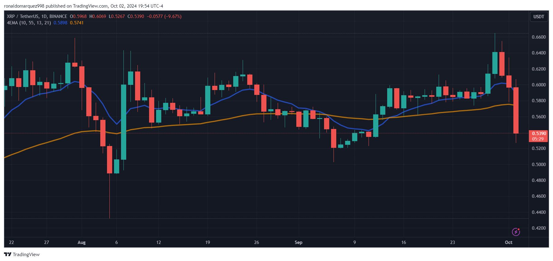On the time of writing, XRP is buying and selling at $0.5390, down 10% after the SEC appealed the choose’s ruling on Wednesday.