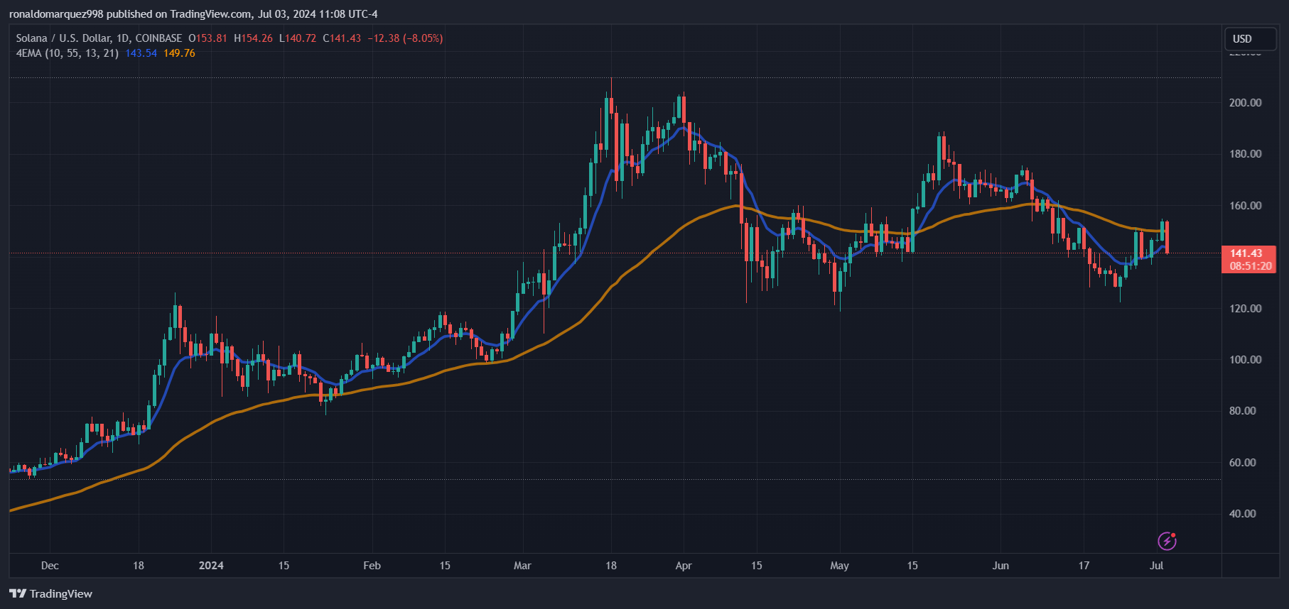 On the time of writing, Solana’s native token SOL is buying and selling at $141, following the final market downtrend recorded on Wednesday, leading to a value drop of 5% within the 24-hour timeframe.