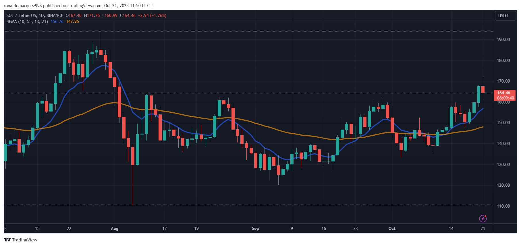 The fifth-largest cryptocurrency, has proven vital worth motion over the previous month, gaining roughly 10% and at the moment buying and selling at $164.50. This restoration follows a big drop to round $109 on August 5, signaling a powerful rebound amidst a typically bullish market sentiment.